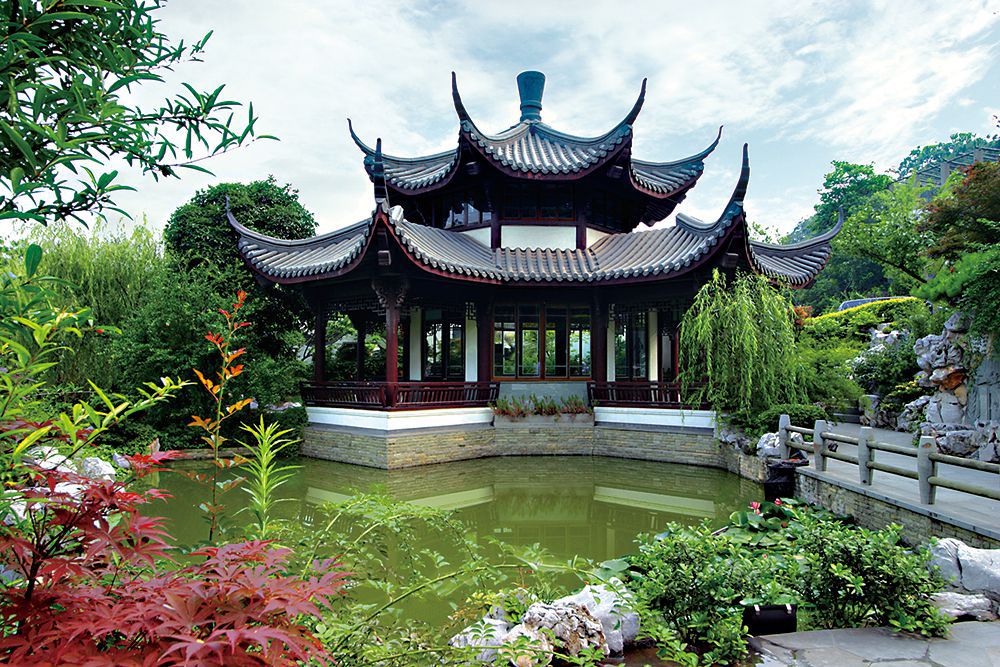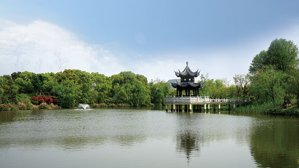 春緣是這個(gè)園子的第一景,位于第一臺(tái)層。春緣石后,半畝方糖“雙”鑒開(kāi),兩面雙疊水池錯(cuò)落有致。其中一疊白石拱橋玉立柳下,池水流入其下一疊,名鴛鴦池,池上設(shè)三折親水棧橋略浮于水面,水中錦鯉翩然游動(dòng),似在行人腳邊嬉戲,意趣盎然。