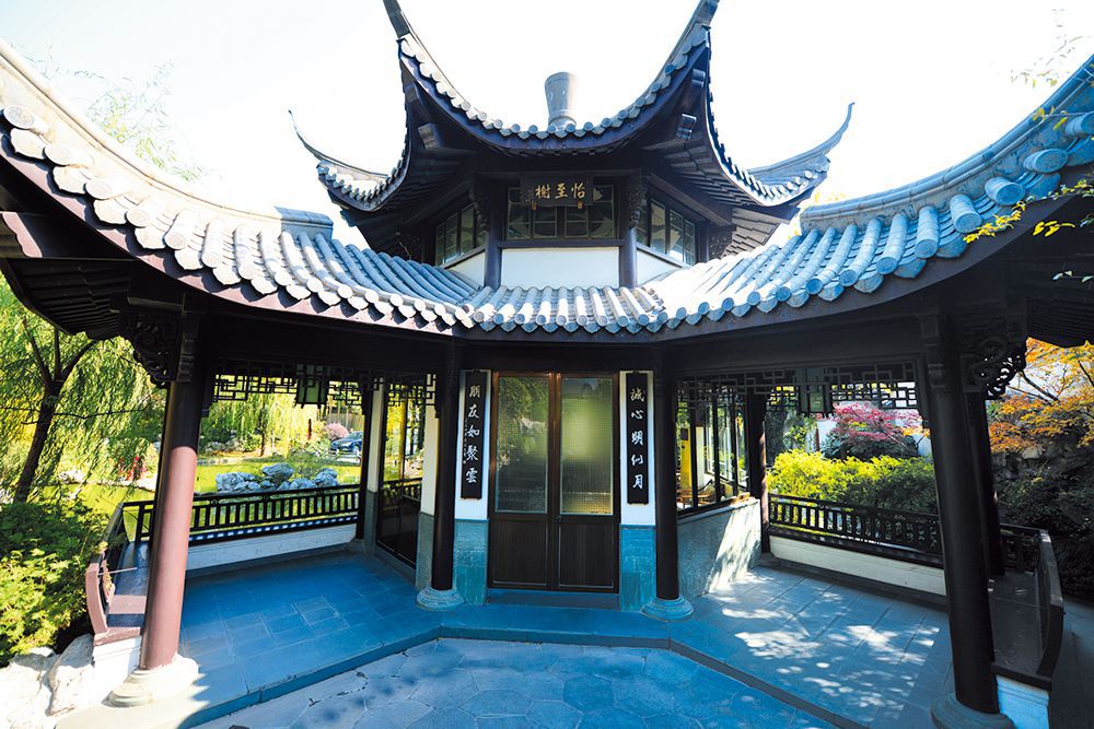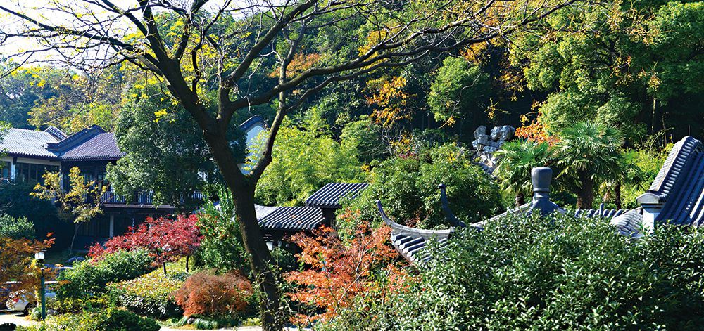春園最高層是春來(lái)山居。這里確是一處居所,屋舍由全木搭建,屋內(nèi)現(xiàn)代設(shè)施齊全,舒適感十足。在綠樹(shù)環(huán)繞中,全園風(fēng)光盡收眼底,參差有致的花紅柳綠中,優(yōu)美的建筑脊部浮動(dòng)其中,偶爾的幾聲?shū)B(niǎo)鳴,更顯得居處幽靜。