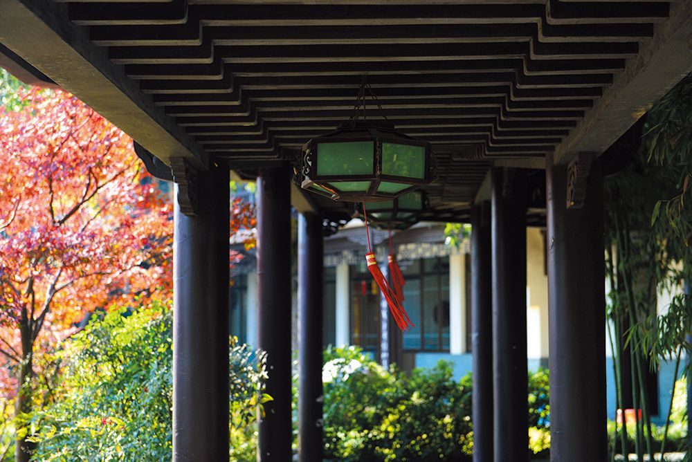 春園的建筑高度不超兩層,深褐色的仿木外觀,設(shè)挑檐和長(zhǎng)廊,古色古香。有別于傳統(tǒng)的辦公場(chǎng)所,在春園工作,推開(kāi)窗就是自然的氣息,在傳統(tǒng)與現(xiàn)代的交融中,俯仰皆是心曠神怡。