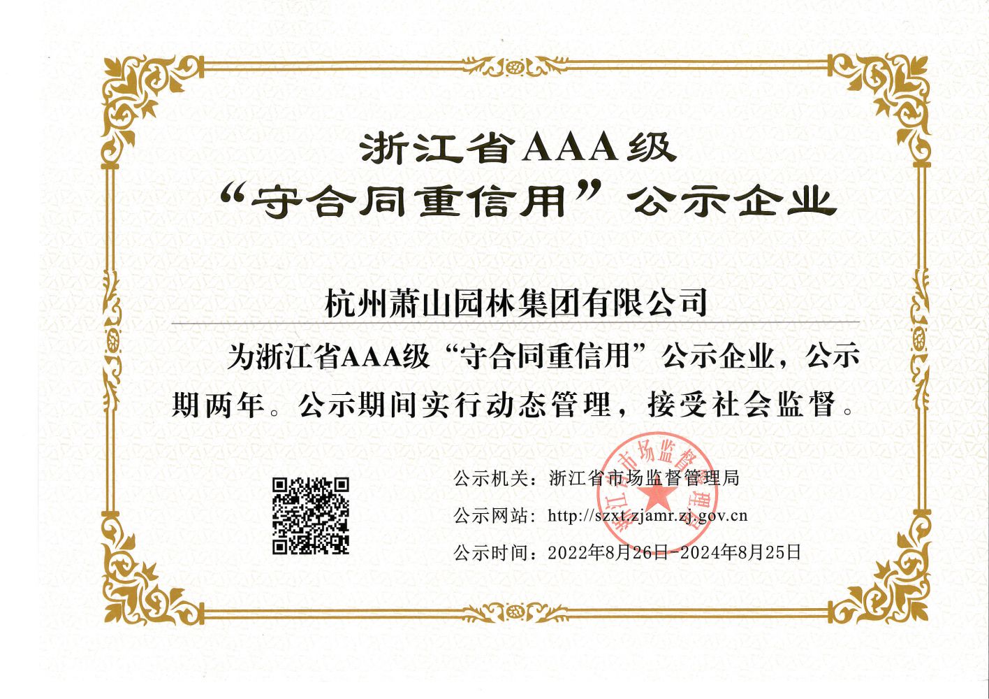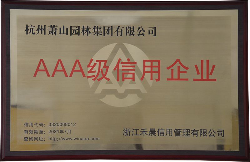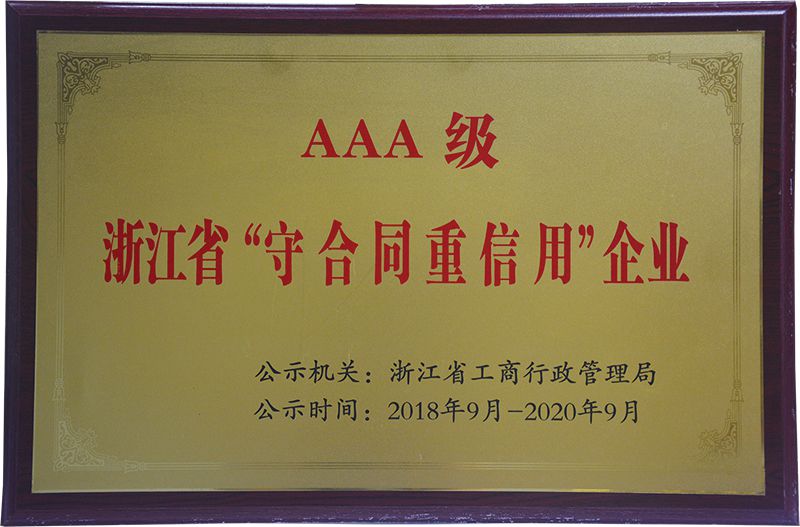 浙江省AAA級“守合同重信用”企業(yè)