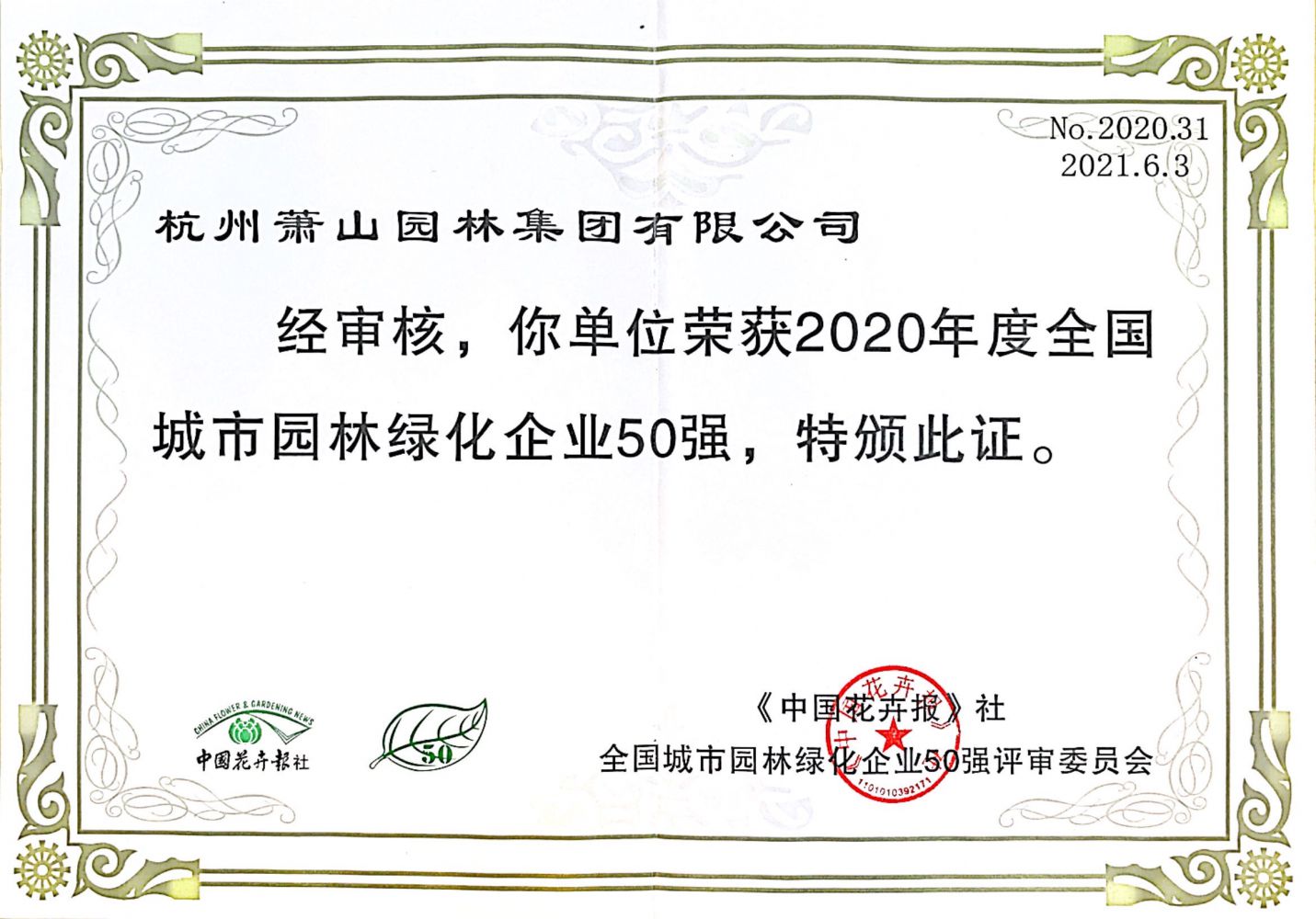 2020年度全國城市園林綠化企業(yè)50強(qiáng)